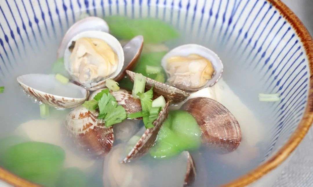 做法:锅烧热,放入花生油,再依次加入姜片、丝瓜翻炒。然后倒入清水,放入嫩豆腐块、处理干净的花蛤烹煮。出锅前加入食盐、芹菜调味。