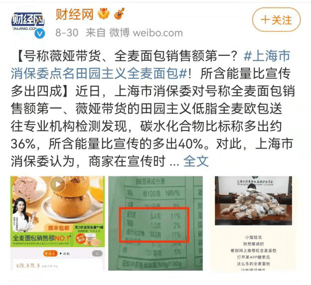 近日,上海消保委就点名了一款热销的x园主义全麦面包。经检测发现,这款全麦面包所含能量比宣传多出4成。若是按其推荐食用,不仅不会更健康,反而会因摄入更多热量而变胖!